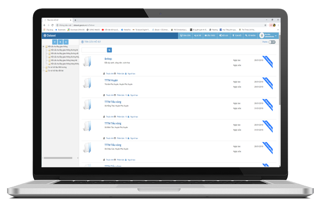 dữ liệu bản đồ, dữ liệu số, lưu trữ dữ liệu dưới dạng metadata ... Dữ liệu được